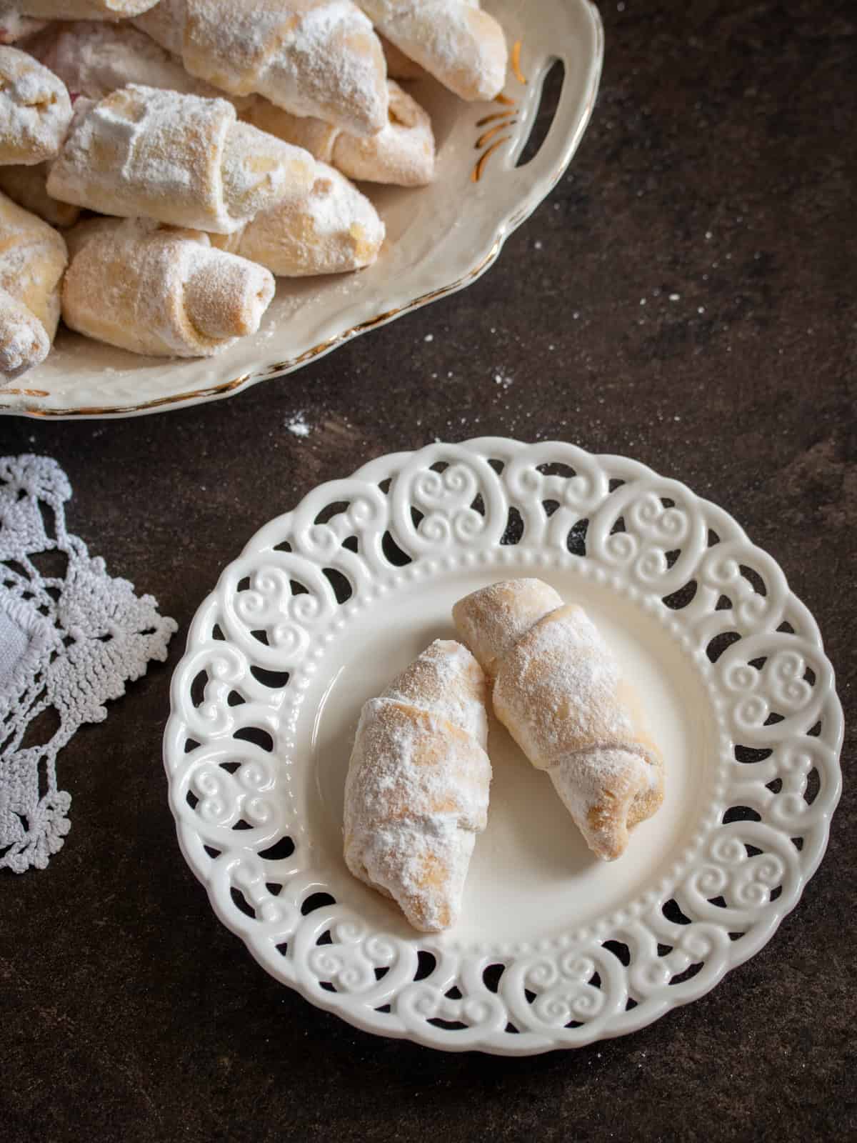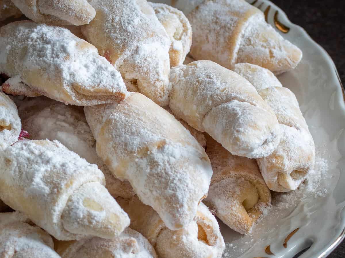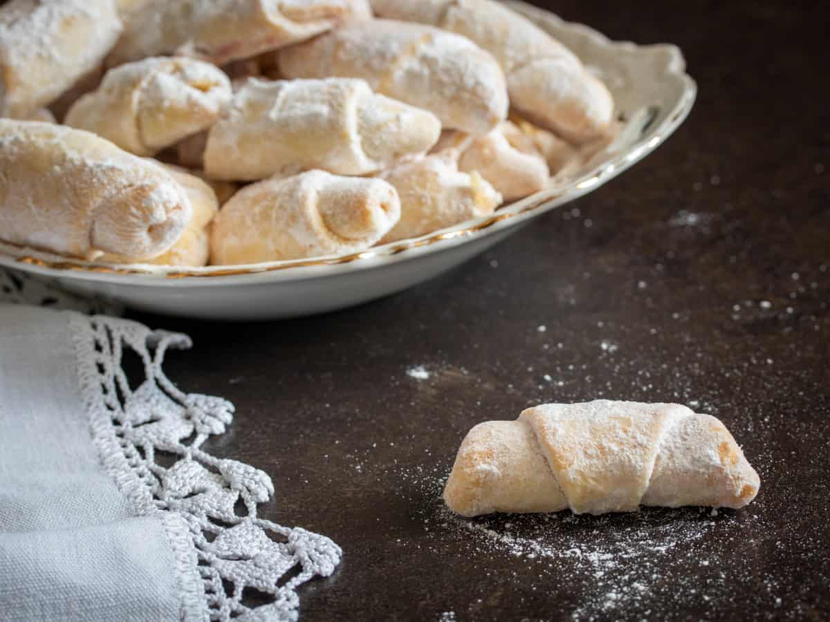 Starinske prhke kiflice Admin, 09/09/2025 Sigurno vam neću reći ništa novo ako istaknem da su mnoge kategorije podložne modi, trendovima ili kako već hoćete da nazovete to kada nešto postane popularno, željeno i traženo. Bilo da je u pitanju neki automobil, neki odevni predmet, neko mesto za letovanje ili ono za izlaske, tašna koja se nosi u ruci, sport koji se trenira, škola koja se upisuje – sve to je odraz trenutnog perioda, pomodarstva, popularnosti. Često smo se pitali u nekim prijateljskim diskusijama šta neko mesto za izlaske u veoma atraktivnoj beogradskoj ugostiteljskoj ponudi načini popularnim? I to u meri da više nema mesta ni za stajanje, dok neko drugo odmah pored zvrji prazno iako su mu realno i ponuda i cena i usluga na daleko višem nivou? Mnogo je tu faktora, negde i naslućujem koji je najuticajniji, ali i dalje izgleda da malo ima pravila. I onda za koju godinu to veoma popularno mesto više ne bude posećeno, već neko tamo deseto – sve je to neki ciklični proces pojavljivanja i nestajanja trendova. Neki dokoni naučnici su išli dotle da su otkrili povezanost između dužine suknje koja je trenutno moderna i globalnih ekonomskih prilika i stanja na berzama. Tako, na primer, što je suknja kraća – ekonomske prilike su bolje, i obrnuto. Naravno, u sred elaboriranja ove teorije, stoji i upozorenje da ovo nikako ne treba da bude indikator za ulaganje kapitala, već da investicije treba da počivaju na daleko opsežnijim analizama od vidljivosti ženskih kolena. Uostalom – može li se reći koja je dužina suknje sada moderna? U ormaru mi vise i one koje dosegnu do vrha butina i one koje se bezmalo vuku po zemlji. Dobro, ja nisam trendseterka niti neko ko (slepo ili uopšte) prati modu, ali ne mogu da prosudim ni prolazeći kroz grad niti listajući časopise koja je dužina sada najmodernija; verovatno je takva i globalna ekonomija – ne zna se ko kosi, a ko vodu nosi. Dalje, postoji još jedna teorija u vezi sa modom, ovog puta u šminkanju. Naime, otkriveno je da u vreme velikih ekonomskih kriza raste prodaja crvenog ruža za usne. Postoje čak i objašnjenja koja potkrepljuju ovo – te da se ulaže u jedan, ali luksuzniji i upadljiviji komad šminke, te da se žene trude na taj način da privuku nekog platežnijeg muškarca. O ovoj teroji mogu samo da – upravo teoretišem. Znate onu izjavu – nekim ženama crveni ruž stoji kao seks, a drugima kao ajvar. E, pa ja sam ova sa ajvarom, tako da mi je crveni ruž vazda bio samo pusta želja. Kada bih morala da odaberem jedan proizvod iz tog učenja koje povezuje šminku i globalnu krizu – moj izbor bi bio maskara. Za nju nemam nijednu teoriju koja bi je povezala sa kretanjem cena hartija od vrednosti niti cene sa žitnica u Peruu. Da ne pominjem što za mene volumen, što maksimalniji, nikada neće izaći iz mode. Sve ovo vam ispričah ne bih li rekla jedno – vraćaju se u modu starinski, bakini slatkiši. Oni sa mašću, sa džemom, sa običnim sastojcima. Oni koji se prave jednostavno, oni koje su bake pravile muteći žicom, umesto samostojećim mikserima, za koje su orahe seckale rukom, a ne u multiprakticima. Oni kolači koji nas podsećaju na čipku i porcelan, garderobu sa diskretnim mirisom naftalinskih kuglica i toplotu koju širi svaki pogled na starinu, ušuškanosti i sigurnost tradicije. Kao i kod mesta za izlaske, ni ovde nisam sasvim sigurna zbog čega su se starinski slatkiši vratili na velika vrata – da li što se u vremenima koje trenutno preživljavamo tražimo nešto sigurno i poznato ili smo jednostavno izgustirali sve čizkejkove, museve i ostale moderne đakonije. Bilo kako bilo, štrudla, šne nokle, jabuke u šlafroku i lenja pita su ono što će nas uvek čekati – kao crveni ruž ili dugačka suknja – da nas ukusima zagrle u nesigurnim vremenima. Ovoj plejadi starih, a dobrih recepata, priključujem i ove starinske prhke kiflice. Najobičniji sastojci, mast, džem za punjenje, prah šećer za posipanje i imaćete punu kutiju kolača koji dugo mogu da opstanu i ostanu. Ovo samo što se tehnologije tiče – verujem da će se ukućani pobrinuti da ove keks-kiflice daleko brže nestanu – jer onaj osećaj kada se tope u ustima, a hrskave su spolja, zaslađene domaćim džemom – se želi iznova ponavljati, sa svakom novom kiflicom. . Recepti